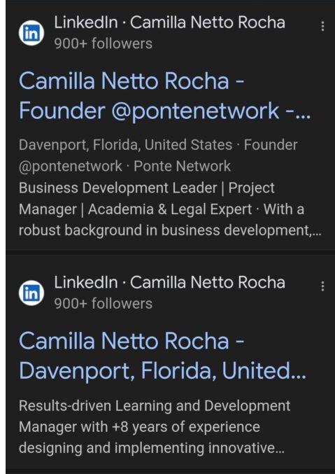 Camilla Rodrigues Netto da Costa Rocha With a robust background in business development, project management, and a strong foundation in academia and legal practice, I bring a unique blend of strategic vision and operational expertise. My career is marked by a commitment to driving growth and innovation through effective leadership and strategic partnerships.